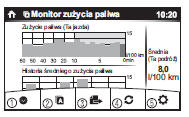 | UWAGA Po przestawieniu włącznika zapłonu z pozycji ON w pozycję OFF, przy kolejnym włączeniu zapłonu ekran Monitora zużycia paliwa jest zmieniany na początkowy ekran monitorowania zużycia paliwa. |