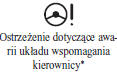 kierownicy. Jeżeli komunikat jest wyświetlany, zatrzymaj samochód w bezpiecznym miejscu i nie kręć kierownicą. Problem nie występuje, jeśli komunikat na wyświetlaczu po chwili zniknie. Jeśli komunikat jednak w dalszym ciągu świeci się, skontaktuj się ze specjalistycznym serwisem. Zalecamy Autoryzowaną Stację Obsługi Mazdy.